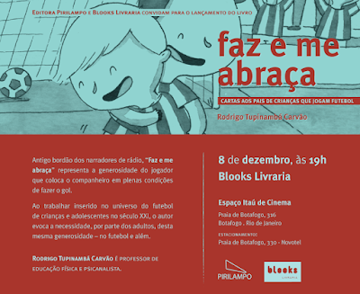 É com muito carinho que convidamos para o lançamento do livro ‘Faz e me abraça – cartas aos pais de crianças que jogam futebol’.